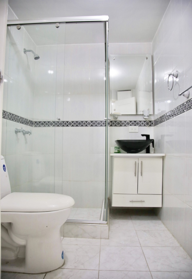 El apartamento cuenta con un área de 75 M2, se encuentra completamente remodelado, consta de tres habitaciones, alcoba principal con baño, un baño social, cocina americana semi-pro, zona de ropas, los pisos del apartamento están en cerámica y en la cocina en porcelanato. Bastante amplio e iluminado.