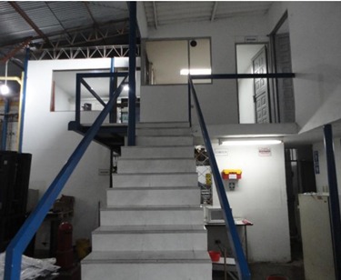 Primer piso: Cuarto de Insumos y eléctrico, Cuarto de vigilancia, Zona de lavado, Panel comunicaciones y cámaras, Área sistema eléctrico, Baño, 1 cuarto, bodega de herramientas y área de parqueo. Segundo piso: 3 oficinas y 2 baño.